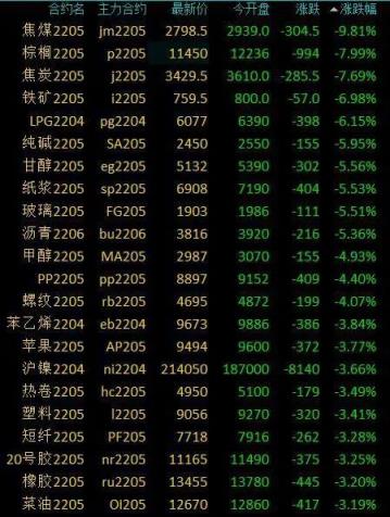 3月14日,國內(nèi)商品期貨收盤紛紛上演了一出“跌媽不認(rèn)”:焦煤跌近10%,棕櫚油、焦炭等跌超7%,瀝青、紙漿等跌超5%,PP、鄭醇等跌超4%,蘋果、塑料等跌逾3%,燃油、PVC等跌超2%,滬銀、菜粕等跌超1%,滬銅、滬鉛等小幅下跌。